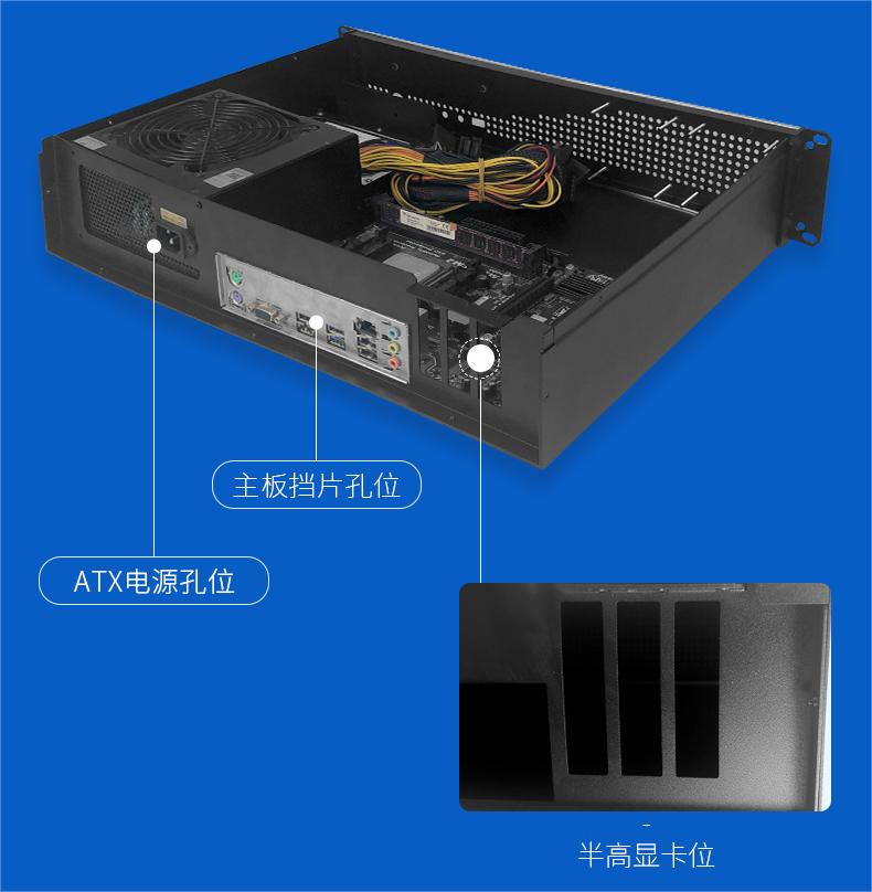 1、質感外形:銑鋁面板服務器機箱,黑銀兩色可選,前蜂窩式通風散熱孔,美觀大氣。